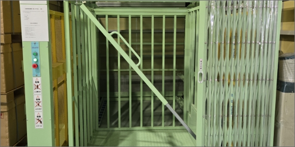 第2倉庫には最大荷重1000kgの垂直搬送機を設置し、2階への搬送を安全かつ効率的に行っています。
